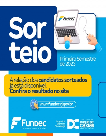 ATENÇÃO ALUNOS SORTEADOS PARA OS CURSOS GRATUITOSEstá aberto o período para entrega de documentação e confirmação de matrícula para os estudantes sorteados nos cursos presenciais. Será possível realizar a conclusão do cadastro de 01 a 07/02, se atente ao prazo!