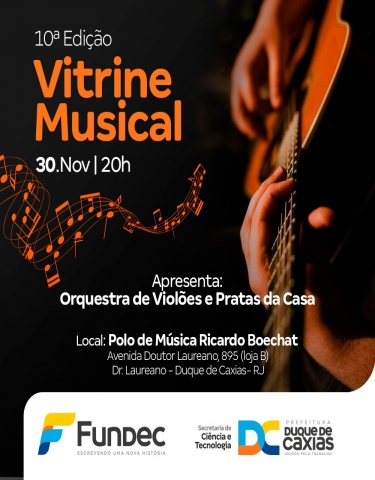 A Orquestra de Violões será composta por oito turmas de violão, que se apresentarão ao lado de dois Pratas da Casa, ex-alunos do polo de música. A noite será de muita comemoração, ao todo foram 5 Vitrines Musicais realizadas no ano, que trouxeram para Duque de Caxias, mais acesso à música e destacaram todo trabalho desenvolvido com os alunos da Fundec.