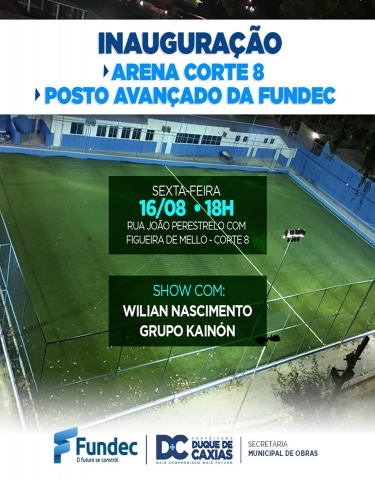A prefeitura de Duque de Caxias irá inaugurar no próximo dia 16/08 mais um polo de educação da Fundec na cidade, o Posto Avançado Corte Oito. No dia haverá um show com o cantor gospel Wilian Nascimento e com a banda Kainón, a partir das 18h.