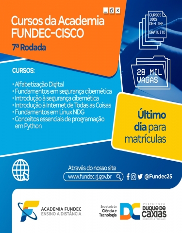 A Fundec, em parceria com a Academia Cisco, está oferecendo opções de cursos gratuitos totalmente inovadores e necessários para o mundo atual. Não perca essa oportunidade de potencializar a sua carreira.